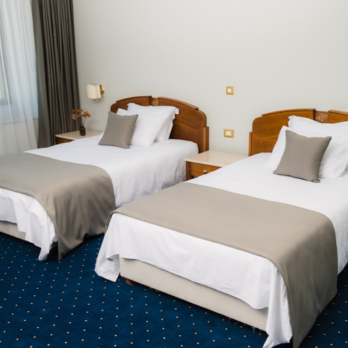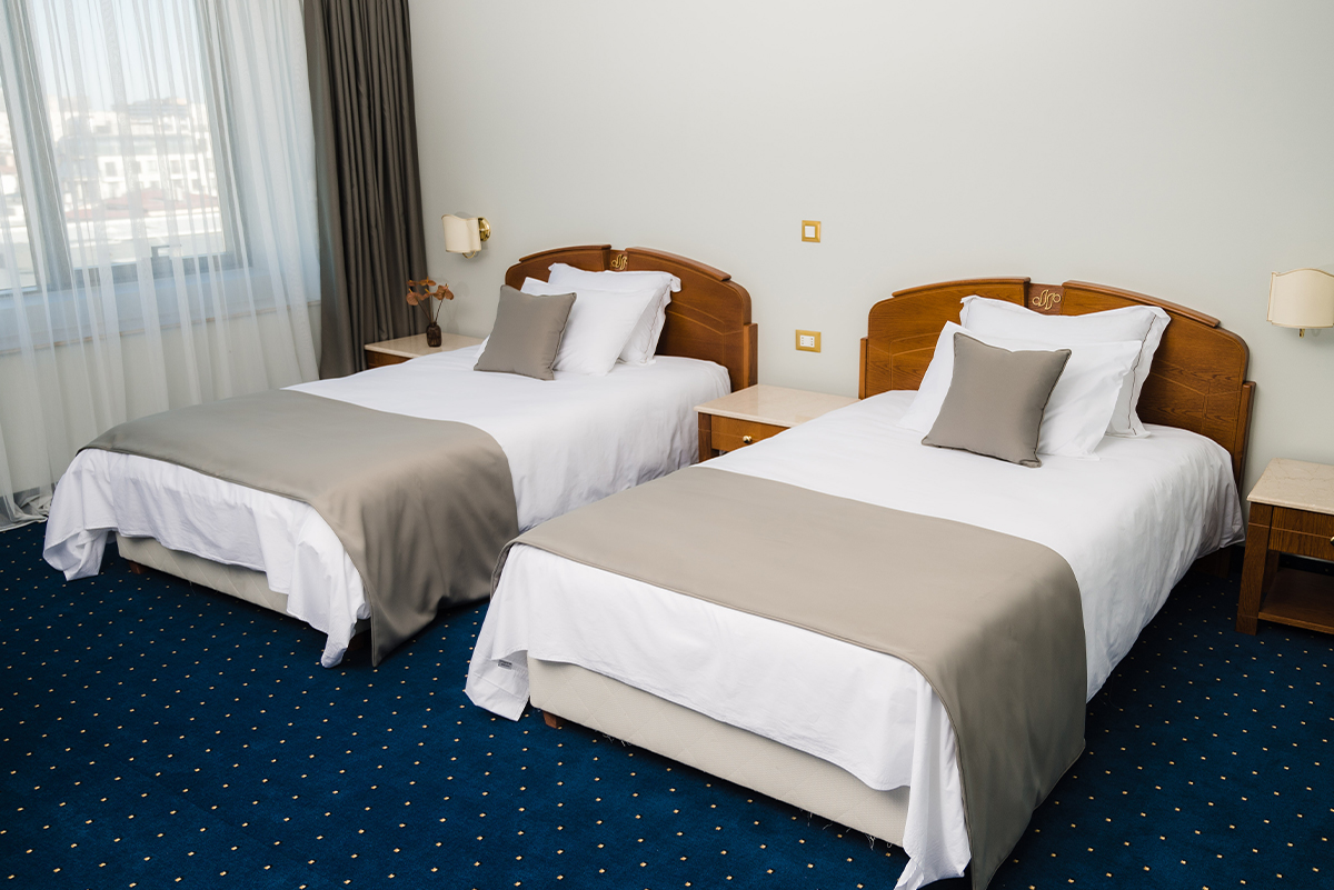 Стаите тип двойно студио са 70 на брой, като в тях има по две двойни самостоятелни легла с обособен кът за работа. Те предлагат ненадминат комфорт и деликатен лукс. Помещенията разполагат с всички необходими екстри, за да се почувства всеки гост като в по-добрата версия на дома си. Гледката от двойно студио е към древния и вечен Пловдив, която е еднакво внушителна денем и нощем. Стаята разполага с необходимия простор, за да осигури достатъчно лично пространство при бизнес или лично пътуване.